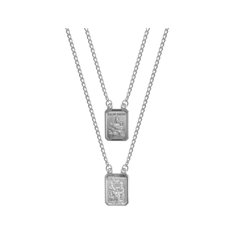 Escapulário em Aço Nossa Sra. do Carmo e Divino Pai Eterno 15x11mm 60cm