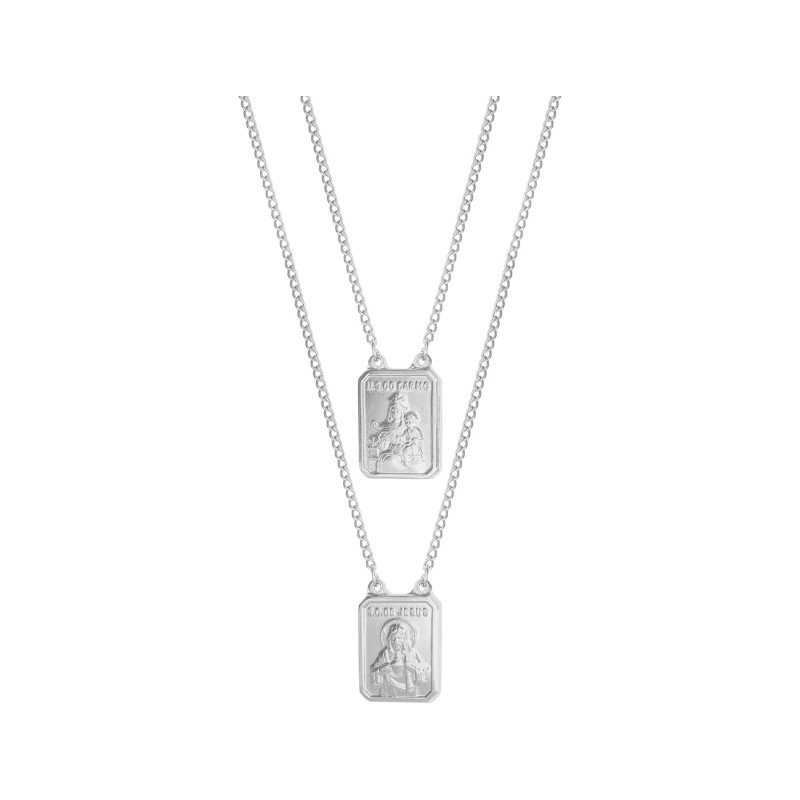 Escapulário em Aço Oval Sagrado Coração de Jesus e Nossa Sra. do Carmo 22x17mm 60cm