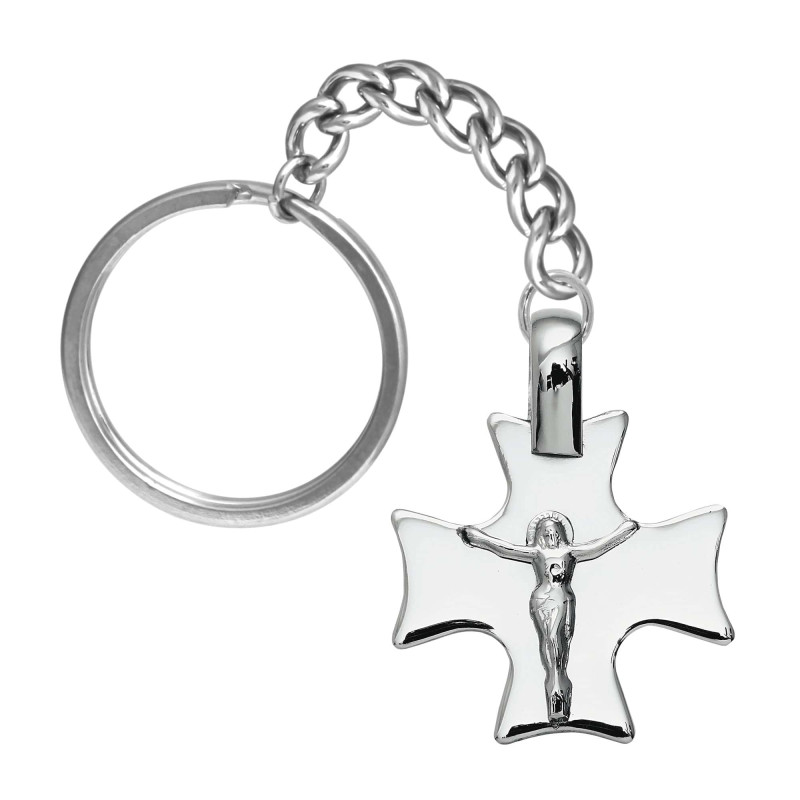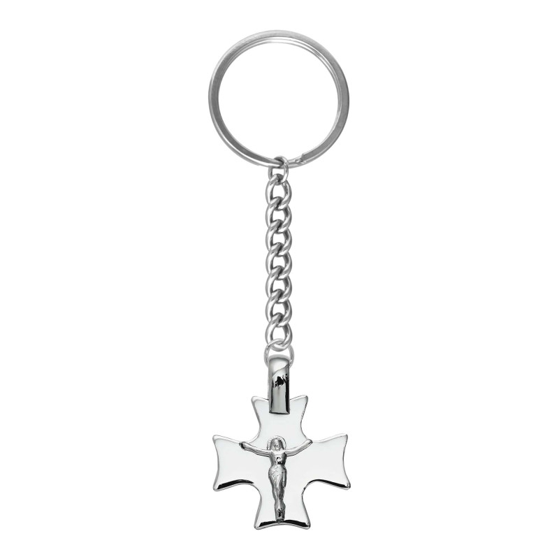 Chaveiro Aço Cruz Quadrada com Cristo 27x27mm