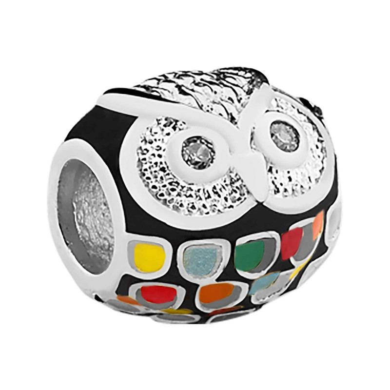 Pingente em Prata Link Coruja Tubo com Resina e Zircônia Branca 10x10mm 00240