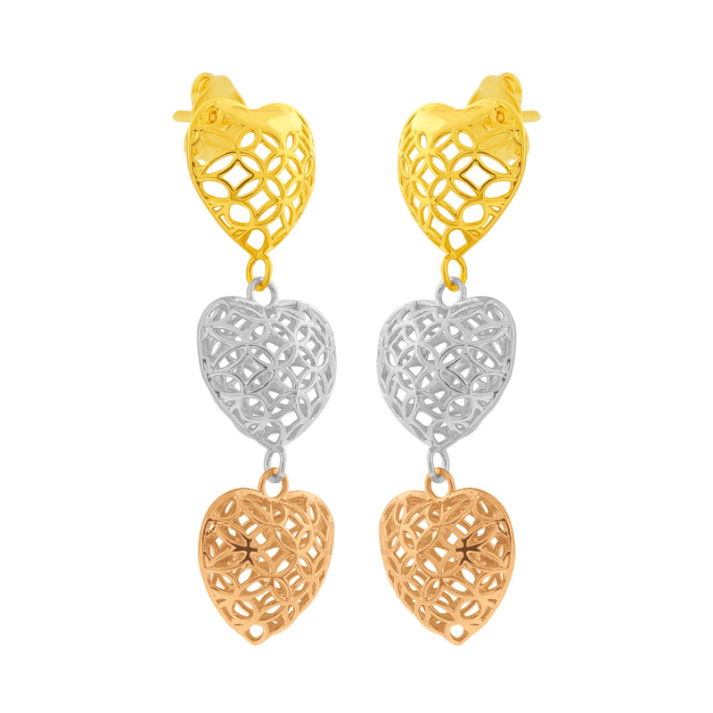 Brinco de Prata Triple Love Filigrana Tricolor 00260