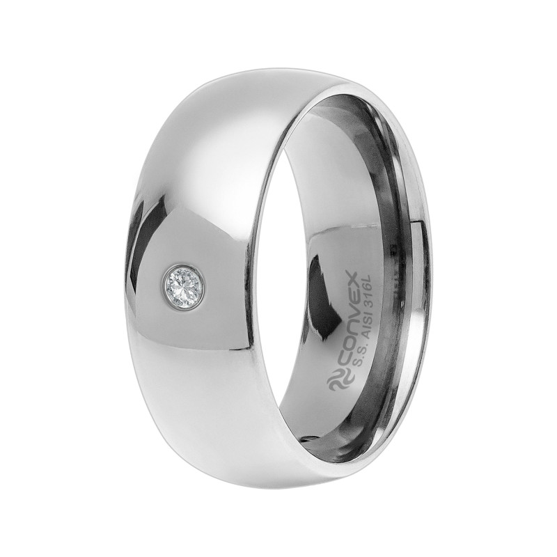Aliança em Aço Haia Abaulada 8mm com Zircônia 2.5mm