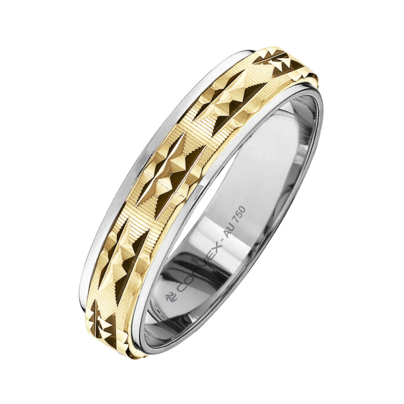 Aliança de Ouro 18K Angel Bicolor Giratória com Diamantado Vertical Paralelo 5.6mm