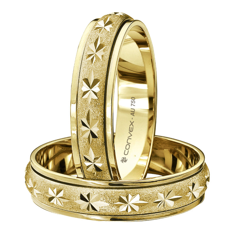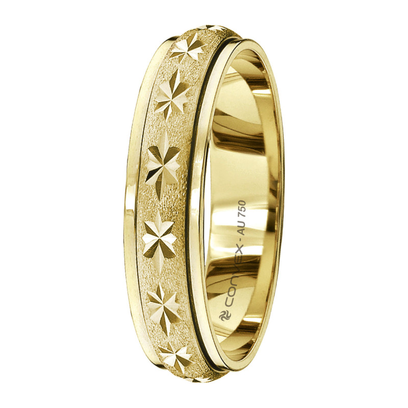 Aliança Ouro 18K Fire Giratória Jateada com Diamantado Estrela 5mm
