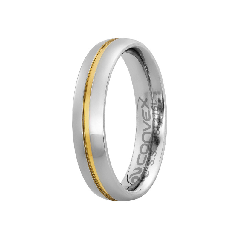 Aliança em Aço Plus Max 5mm Abaulada com Filete Central em Ouro 10k