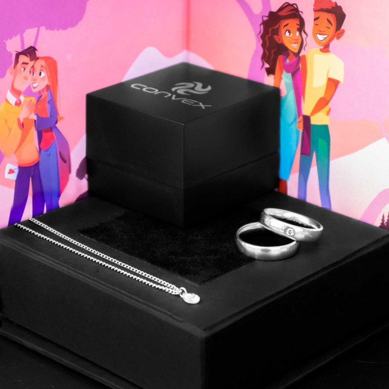 As alianças são feitas com aço 316L, não oxidam, podem ser usadas na piscina, no mar que não escurecem.