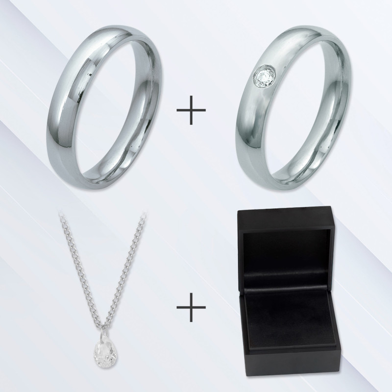 0 Alianças de Aço Lille Comfort com Zircônia 5mm 01 Aliança de Aço Lyon Comfort 5mm nos aros que escolher.