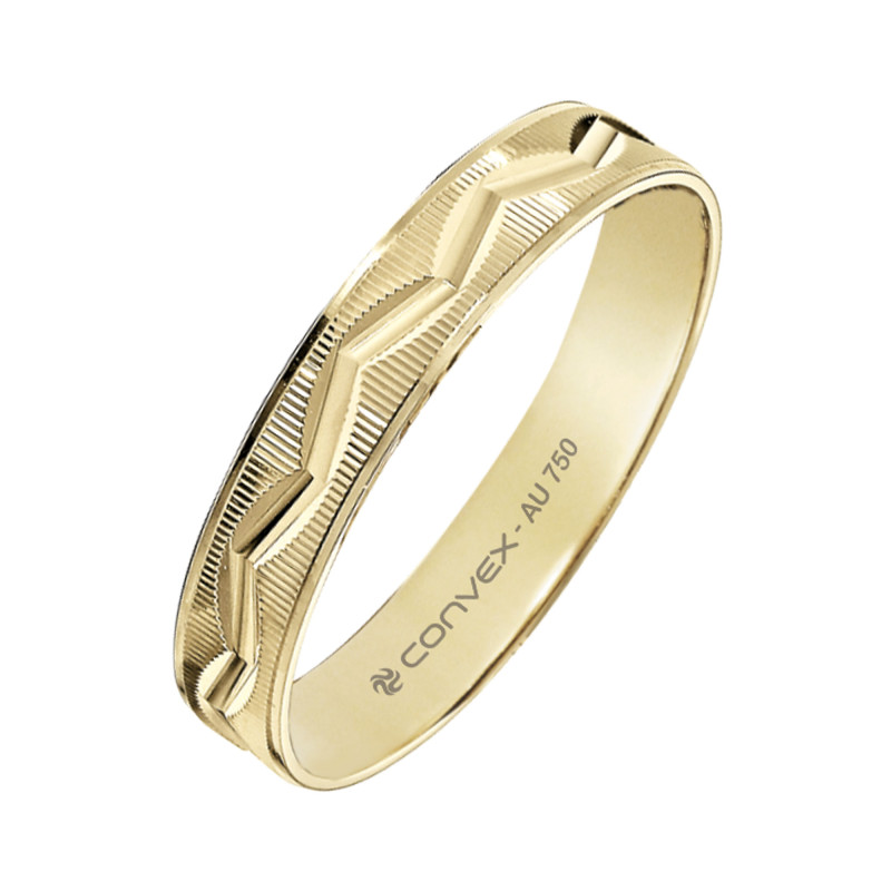 Aliança de Ouro 18k Suécia com Trabalhada e Diamantada Zigue-Zague 4.00mm