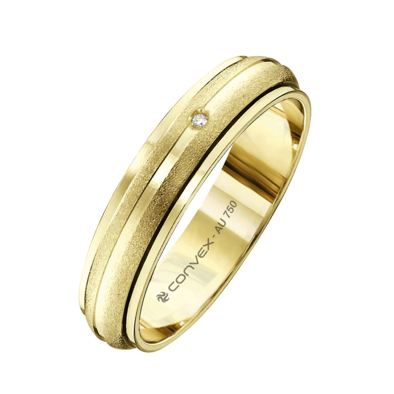 Aliança de Ouro 18K Lovely Giratória com Jateados Laterais e Diamante 5mm