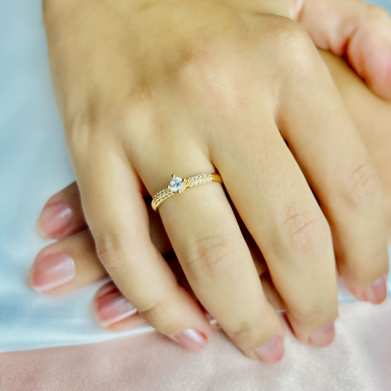 Sofisticação com um Toque Descomplicado – Anel Solitário em Ouro 18K com Zircônias