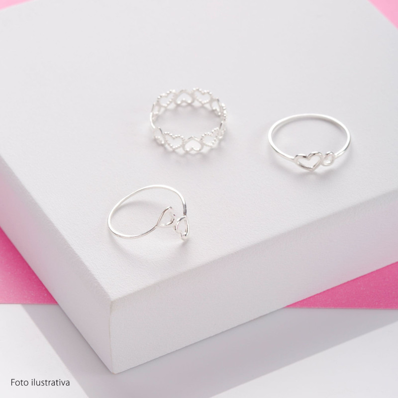 Sinal do Amor e da Amizade, o Anel Prata Link Corações Vazados é uma das joias da Coleção Delicada, ele combina com todas as idades e é perfeito para presentear quem ama.