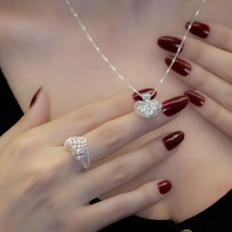 Anel de Prata Coração Filigrana