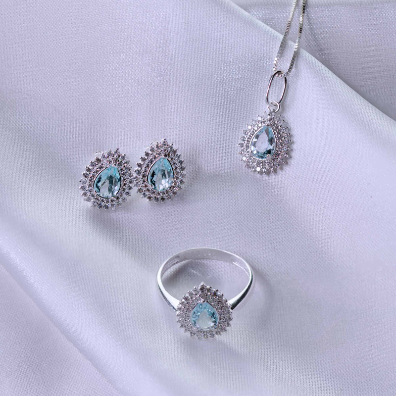 Anel de Prata Coleção Queens Cristal Topázio Sky.
