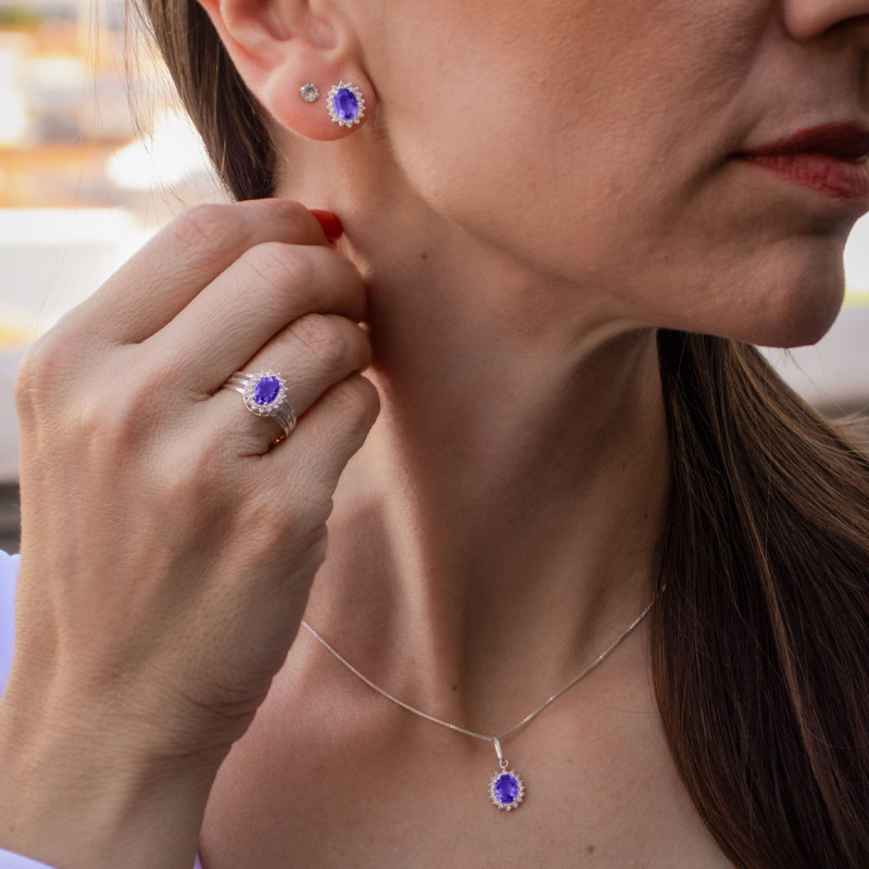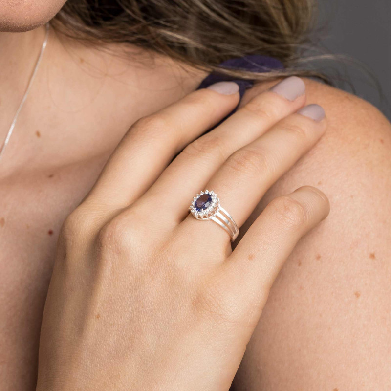 Anel de Prata Coleção Queens Cristal Tanzanita