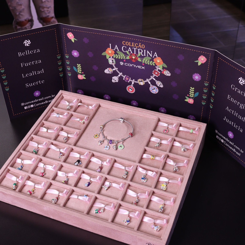 O Kit Business Links é completo, ao adquirí-lo, você recebe os Lançamentos de Berloques Convex, Gnomania e La Catrina, e de brinde um Expositor Exclusivo Rosé.