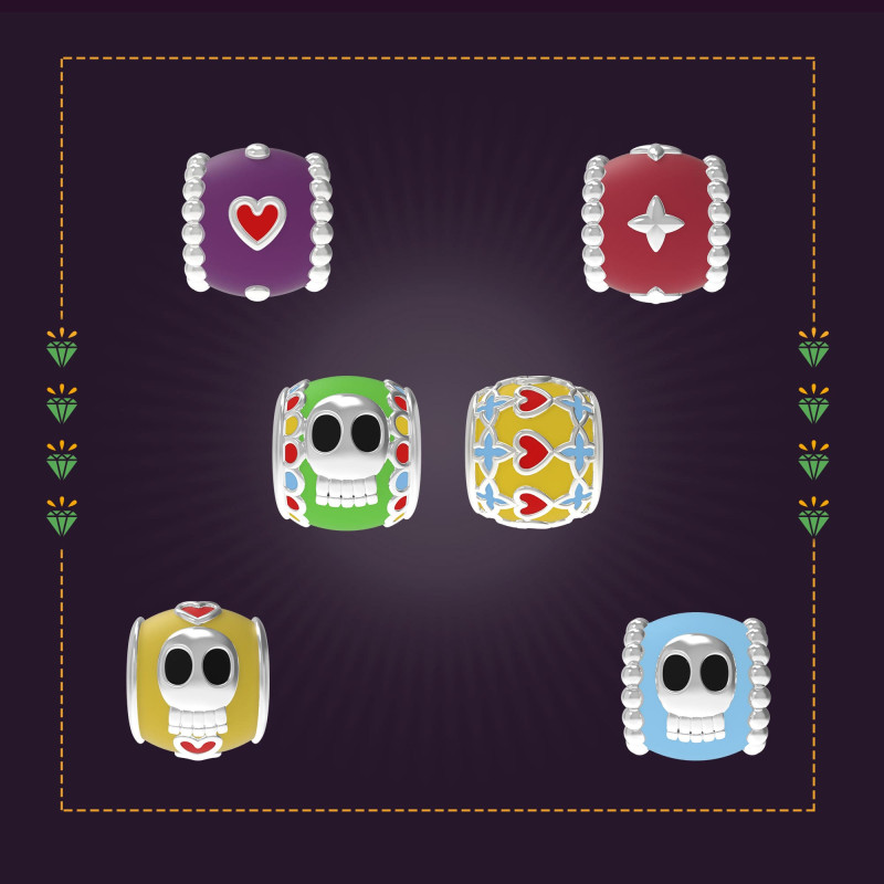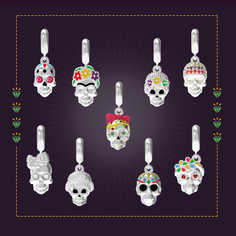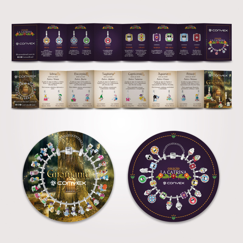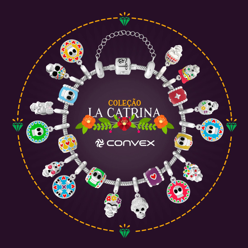 São 44 berloques de Prata 925, distribuídas em 2 Coleções, La Catrina e Gnomania, sendo: