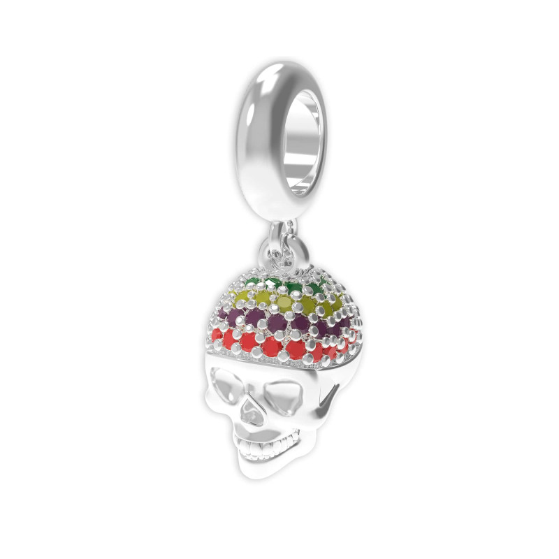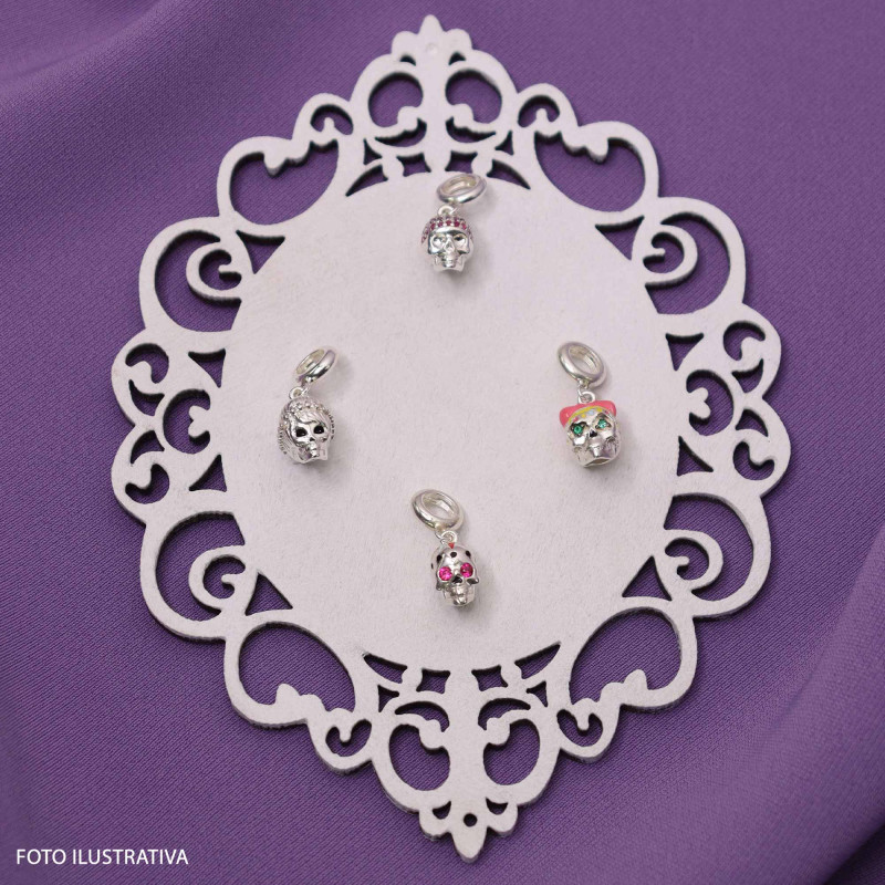 Berloque de Prata La Catrina Caveira Mila com Zircônias