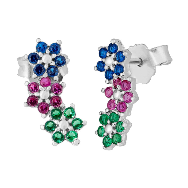 Brinco Prata Flores Colors 00110
