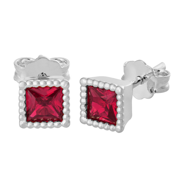 Brinco Prata Quadrado Zircônia Carré Vermelha 00091