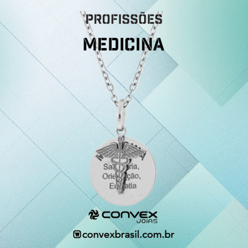 No Colar da Profissão de Medicina tem o símbolo da sua profissão e as três características profissionais.