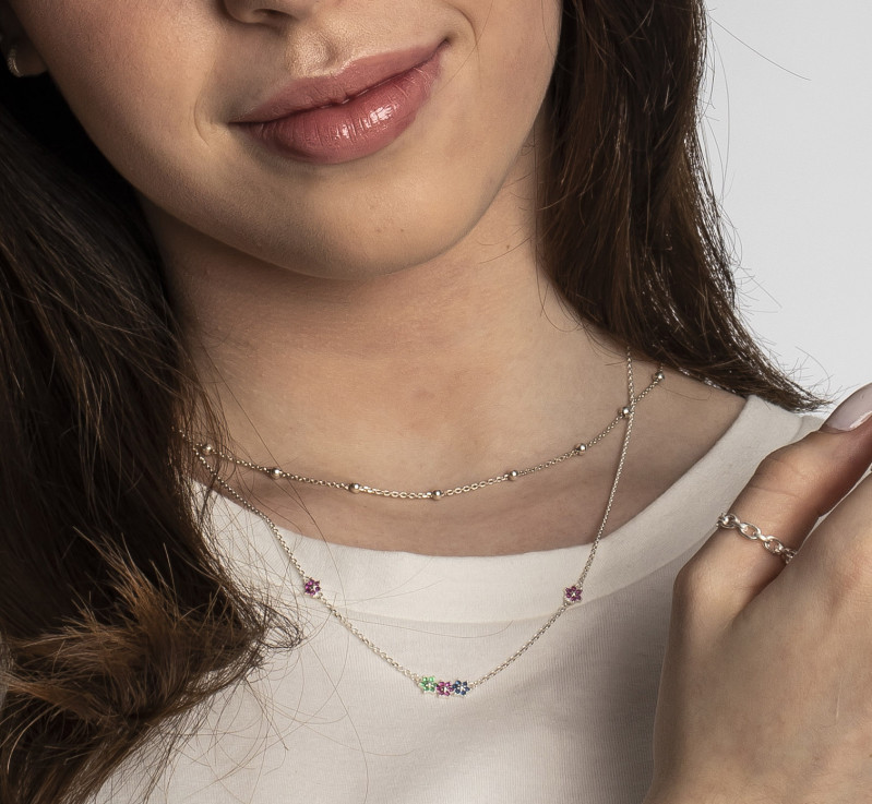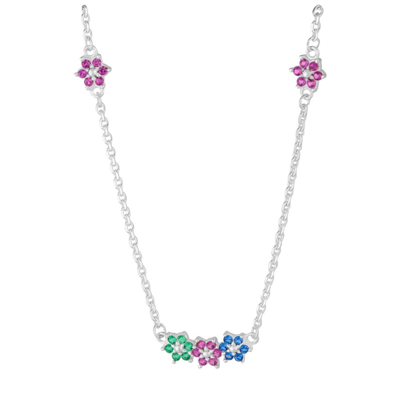 Colar Prata Cadeado Flores com Zircônias Colors 00295