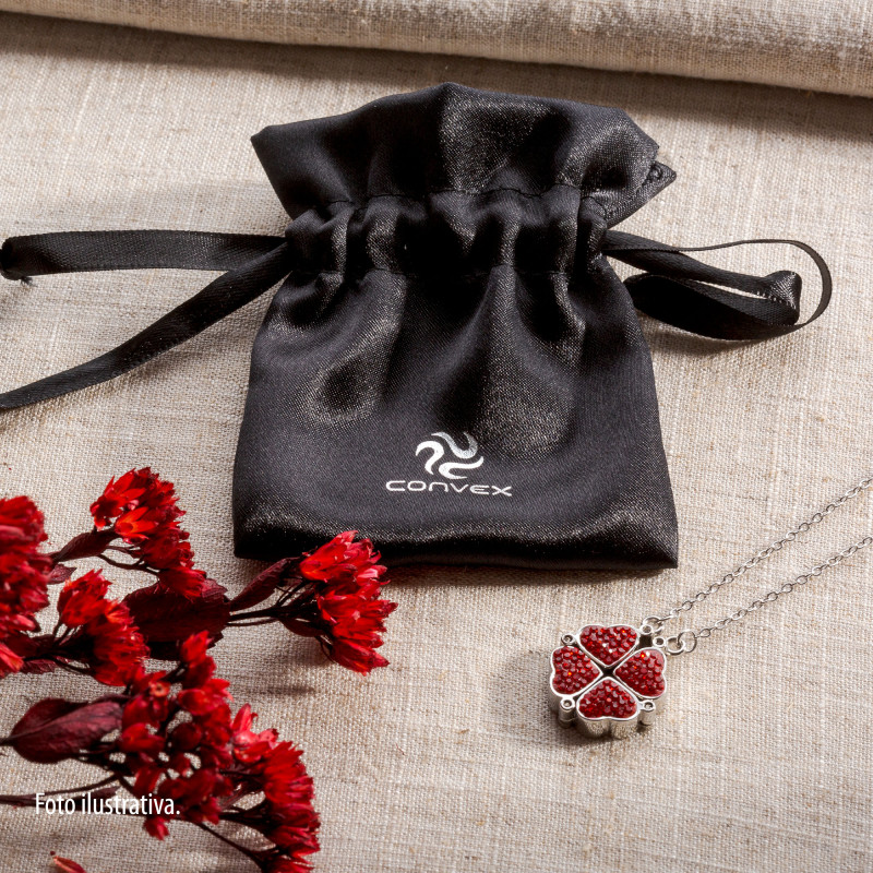 Colar Aço Trevo ou 4 Corações Zircônias Vermelhas