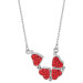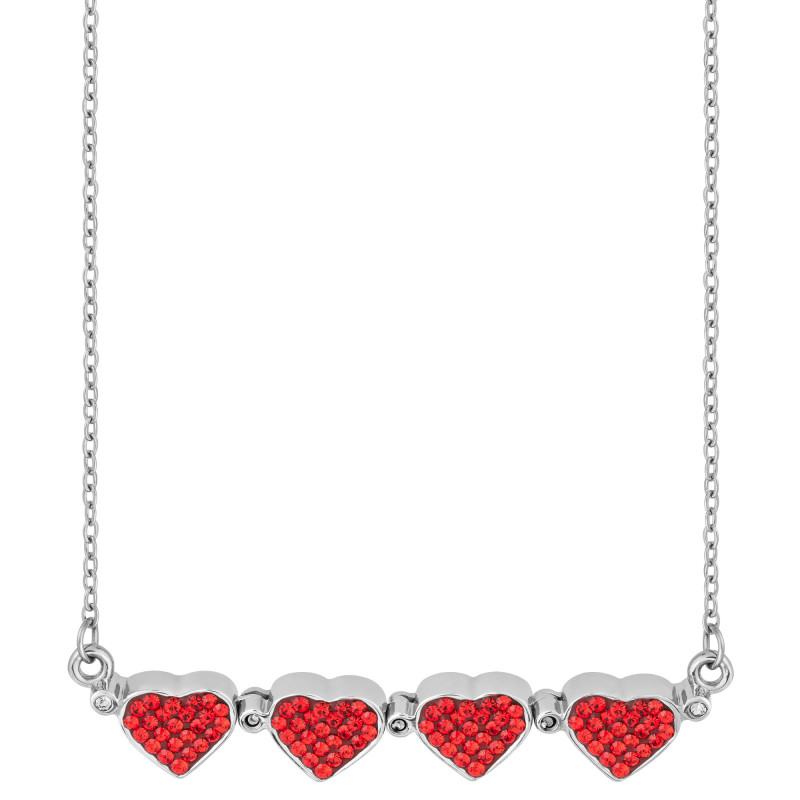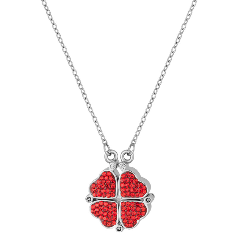Colar de Aço Double Trevo e 4 Corações com Zircônias Vermelhas