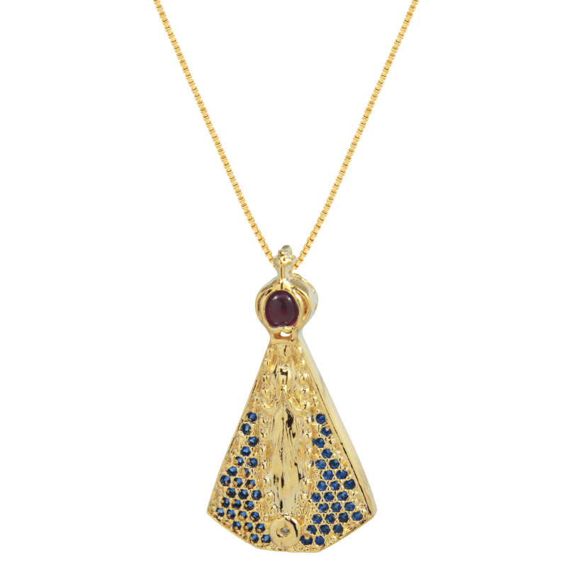Colar Prata Revestida de Ouro 18k Neo Crystal NSra. Aparecida com Zircônia00550