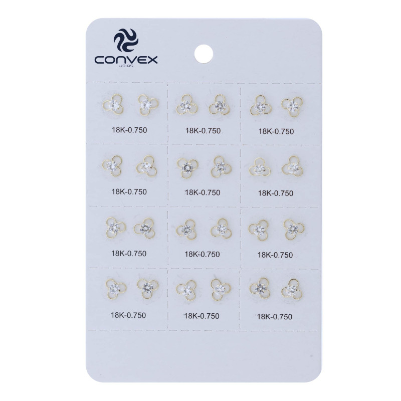 A Cartela dos Brinquinhos Baby é composta por 12 pares de brincos de ouro 18k