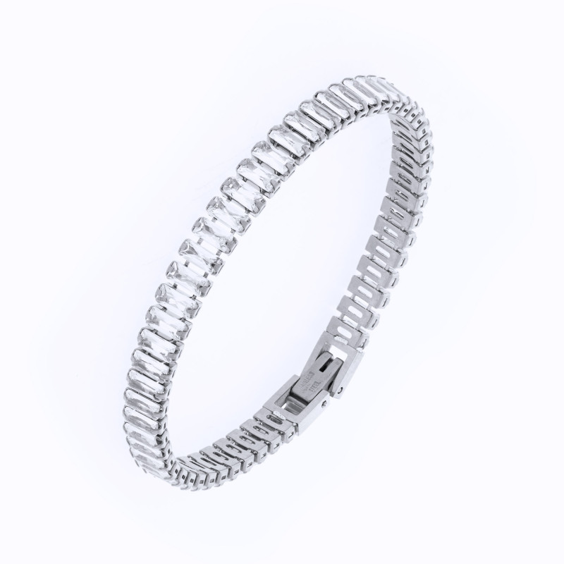 Pulseira de Aço Riviera Zircônias Cristal