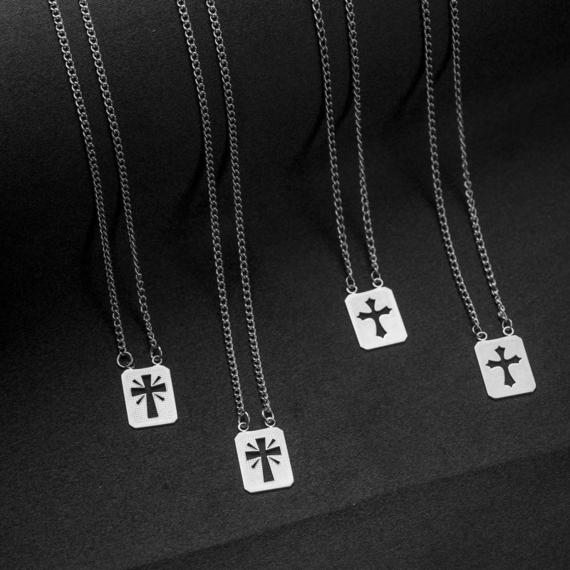 Escapulário de Aço Cruz Romana 60cm 14x11mm