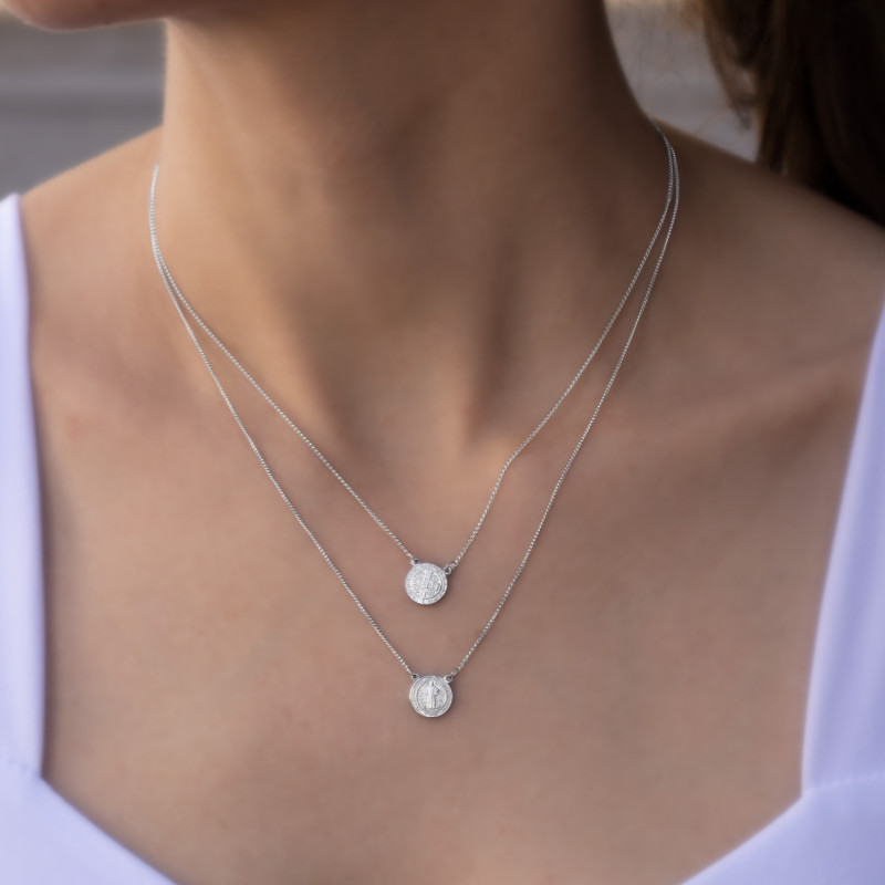 O Escapulário São Bento é uma joia utilizada para demonstrar a fé de forma atemporal e moderna.