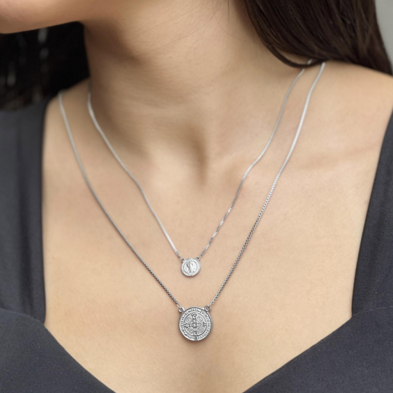 O Escapulário São Bento é uma joia utilizada para demonstrar a fé de forma atemporal e moderna.