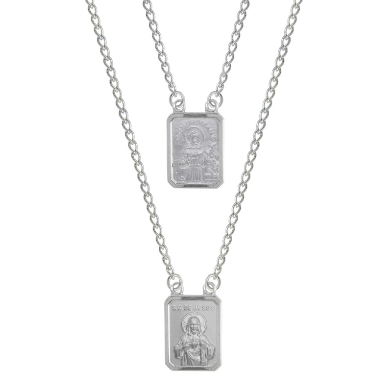 Escapulário de Aço Sagrado Coração de Jesus e São Francisco de Assis 14x11mm 60cm