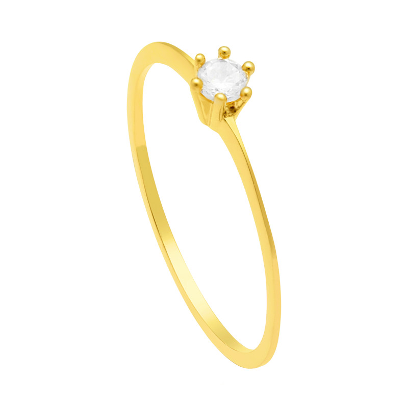 Sofisticação e Elegância em Ouro 18K – Anel Solitário com Zircônia First Line