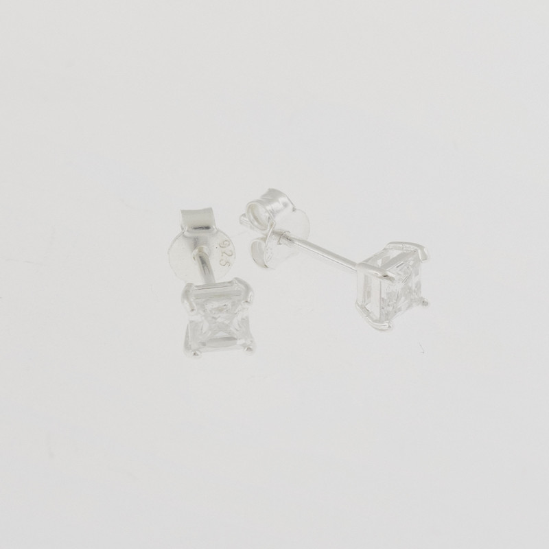 Brinco de Prata Ponto de Luz Quadrado Zircônia 4mm