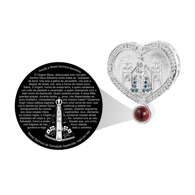 Pingente Prata Rodinada Neo Crystal Coração NSra. Aparecida 28x24mm 00770
