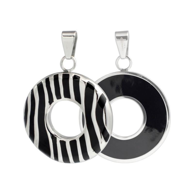 Pingente em Aço Circulo Vazado Trabalhado com Resina Preta 35mm