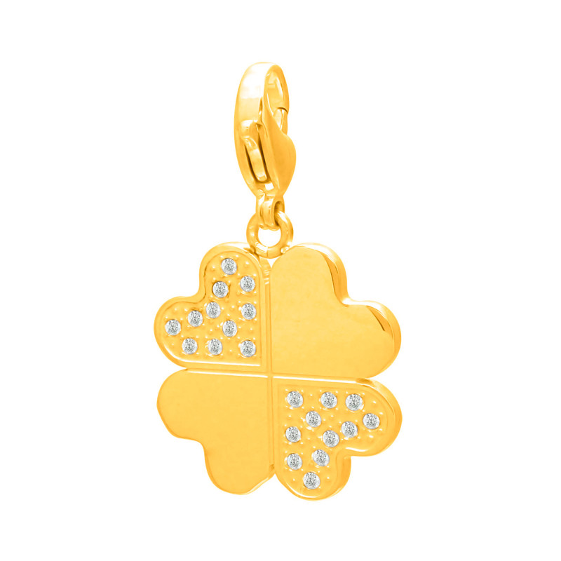Pingente em Aço Trevo 4 Folhas Liso e Trabalhado IPG com Zircônia 21x21mm