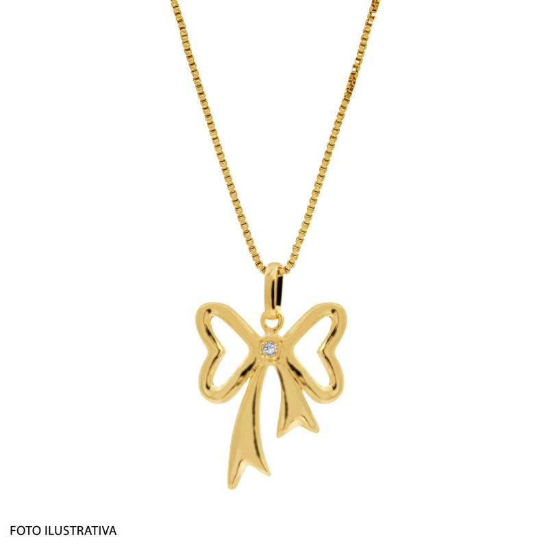 Pingente em Prata Revestido com Ouro 18K Laço e Coração com Zircônia 14.5x19mm 00100