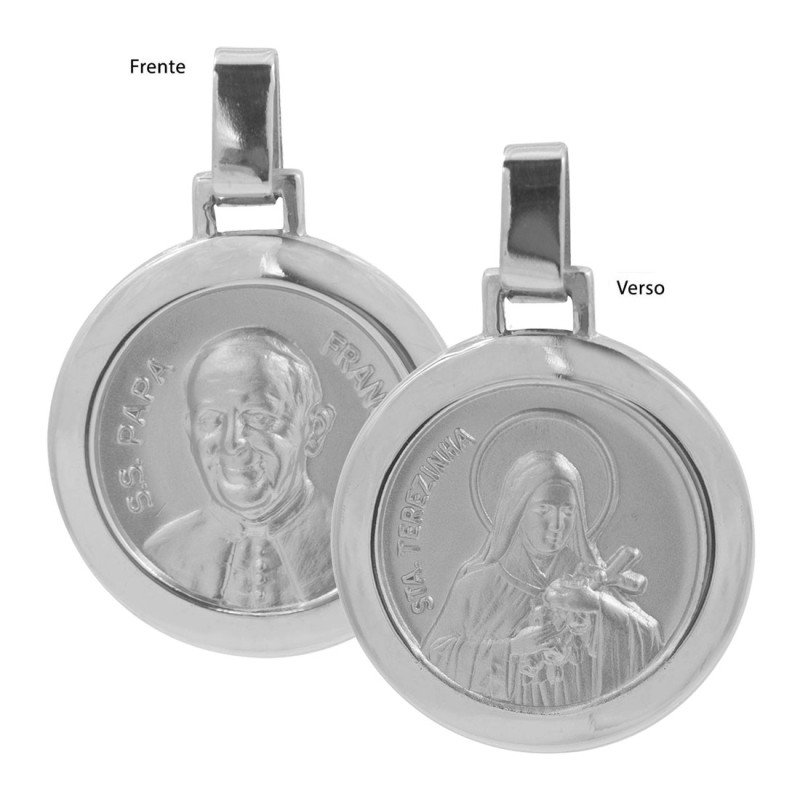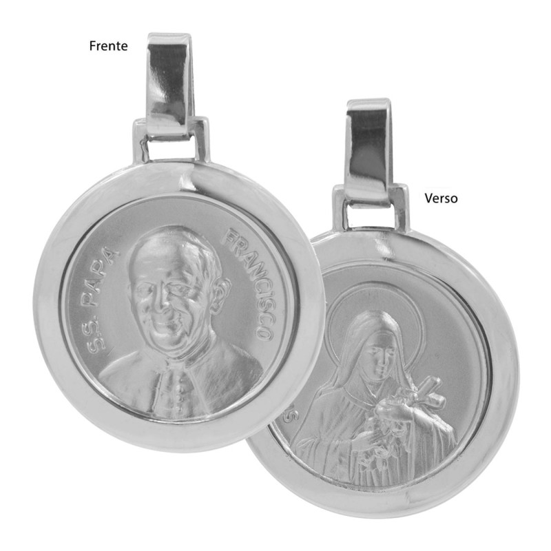 Pingente em Aço Papa Francisco e Santa Terezinha Redondo 30mm