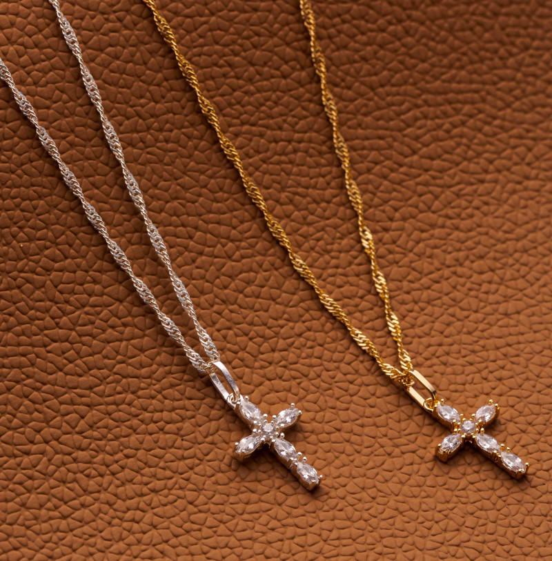 Pingente de Prata Cruz Shine Revestida com Ouro e Zircônias Brancas 16.5x10.5mm