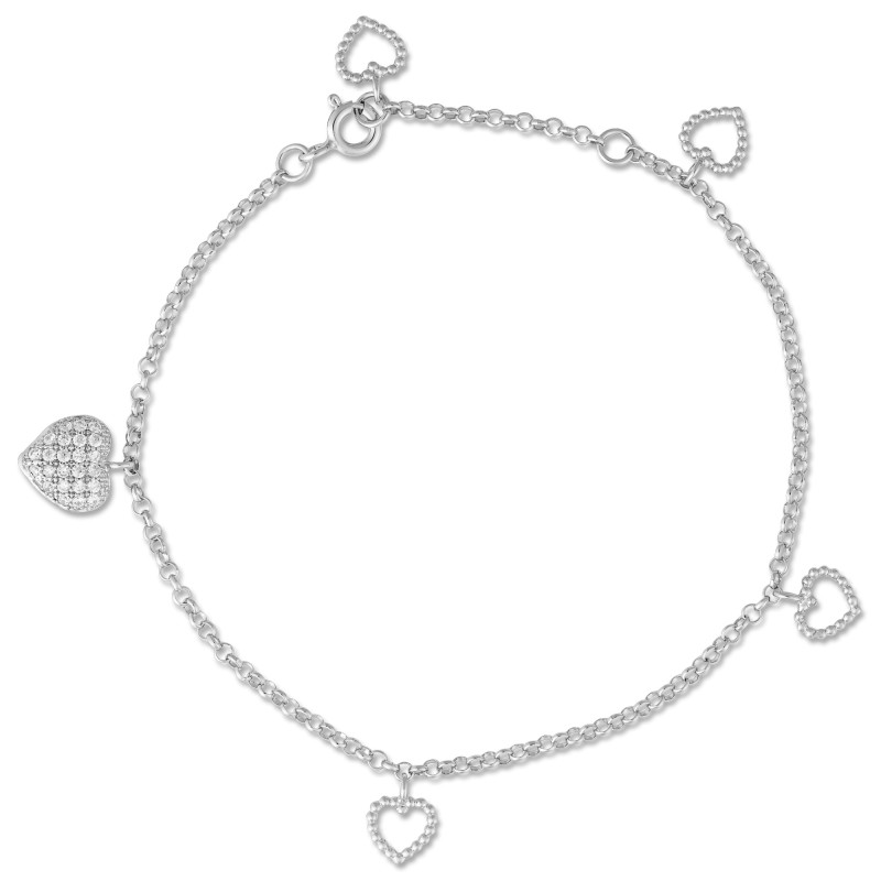 Pulseira Prata Portuguesa Coração com Zircônia 19cm 00190