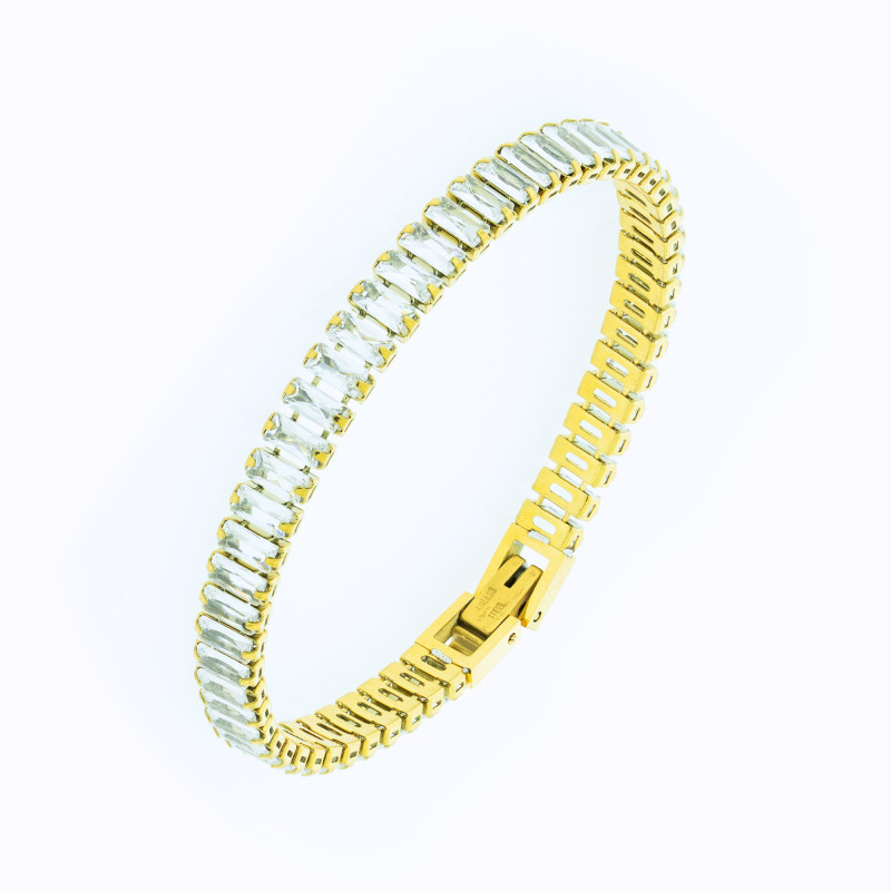 Pulseira de Aço Riviera Cristal Zircônia Baguete 16cm IPG